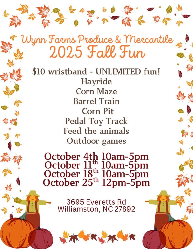 Every weekend in October! $10 for a day full of fun! Concessions will be available. The farm and shop sells pumpkins, hay bales, hand-dipped ice cream, produce, jams/jellies, etc.