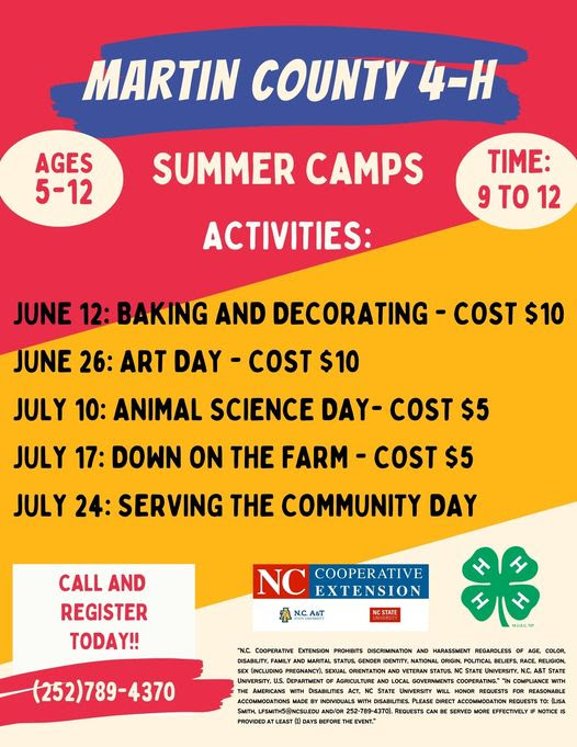 Call and Register! 252-789-4370 at Martin County Cooperative Extension.