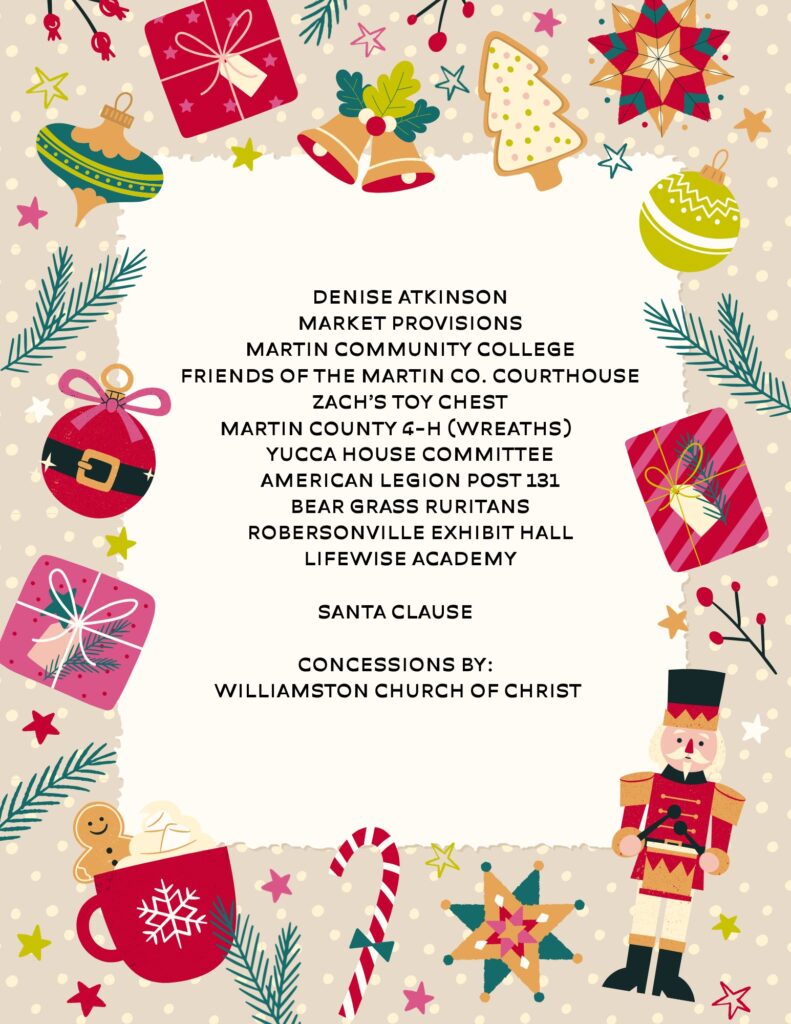 Mark your calendars for the Farmers Market’s biggest event of the year, A Farmer’s Market Christmas, Saturday, November 29th! Santa will make an appearance from 10 AM to 12 PM, noon. Concessions will be sold by Williamston Church of Christ.