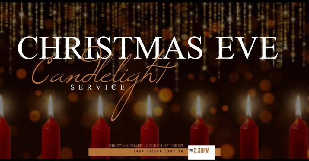 All are welcome to join the congregation at Christian Chapel Church of Christ for a Christmas Eve Candlelight Service at 5:30 PM. Bring the family to celebrate the spirit of Christmas!