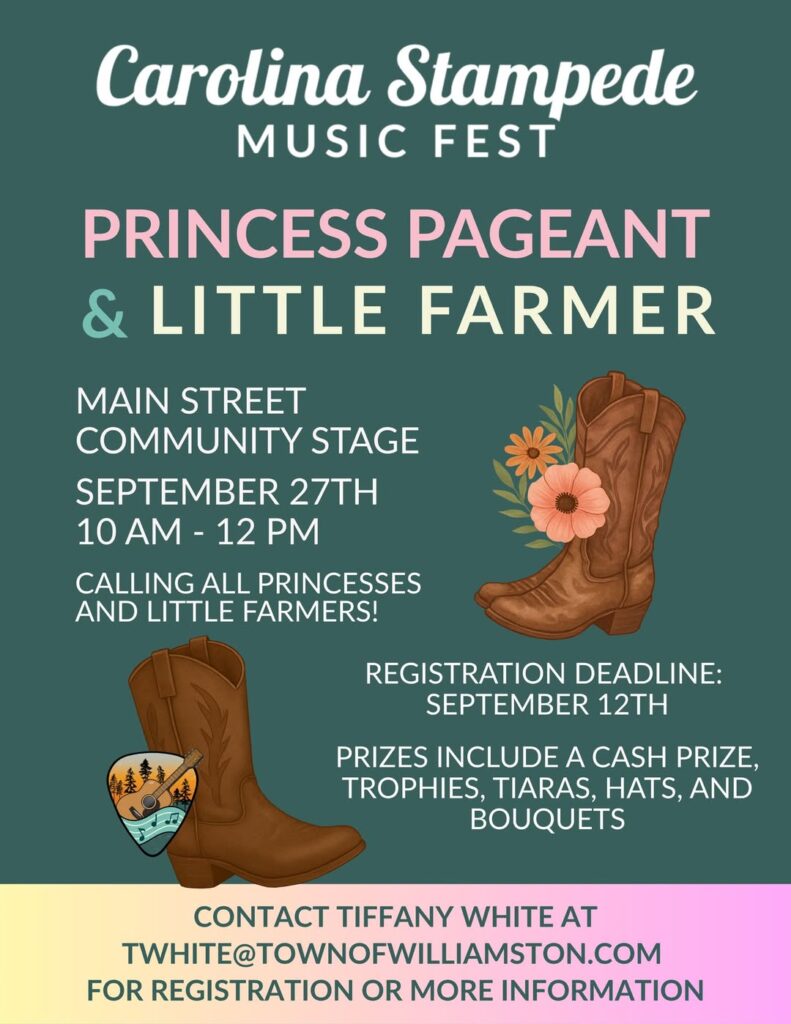 bit.ly/stampedepageant. Questions? Contact Tiffany White at twhite@townofwilliamston.com.