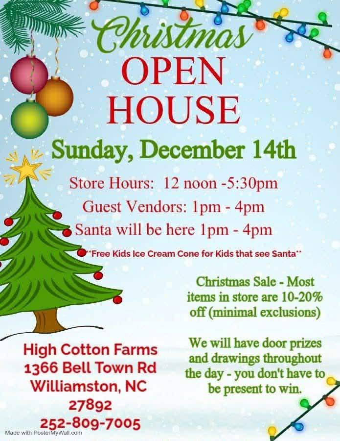 Christmas Open House – Sunday, December 14th, 2025 – Santa will arrive at 1 PM and stay until 4 PM. Bring the kids to see Santa and get a free kids scoop ice cream. Storewide Sales all day! Outside vendors will also be there from 1 PM to 4 PM. Keep an eye out for a list of the vendors (coming soon)!