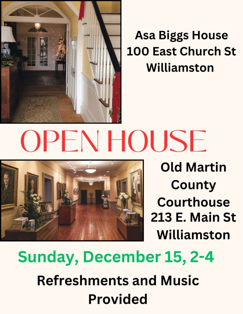 Christmas Open House at Historic Asa Biggs Home & Old Martin County Courthouse