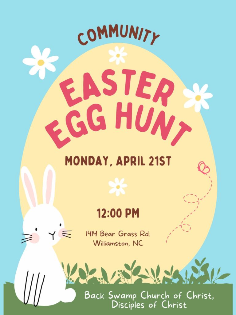 All are Invited to a Community Easter Egg Hunt at Back Swamp Church of Christ! Come out for a fun-filled afternoon.