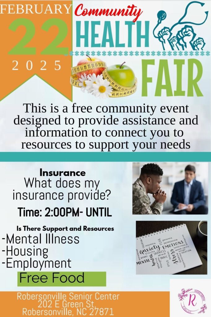 Join us at the Robersonville Senior Center on February 22nd for a free community event designed to provide assistance and information to connect you to resources that support your needs.