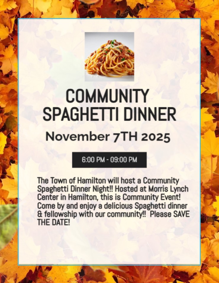 The Town of Hamilton Commissioners will host a community dinner on Friday, November 7th, from 6 PM to 9 PM. Town Hall can assist you with any inquiries you may have about the upcoming event at the office, or just give them a call at 252-798-2001.