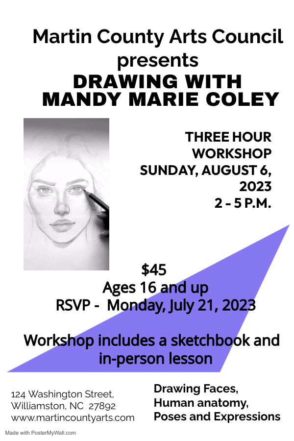 $45 covers sketchbook and the lesson. Call the Arts Council to sign up!