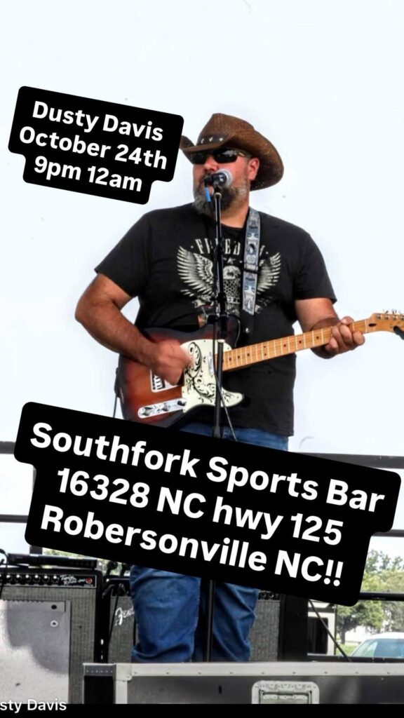 Head to Southfork Sports Bar & Grill on Friday, October 24th, from 9 PM to midnight for a live performance by local artist Dusty Davis.