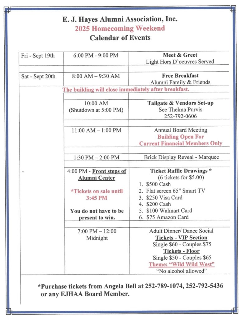 Save the date! The 2025 Williamston Homecoming takes place Sept. 19th to 21st. Time to get ready! The E.J. Hayes Alumni Association will sponsor several activities. There will be…
