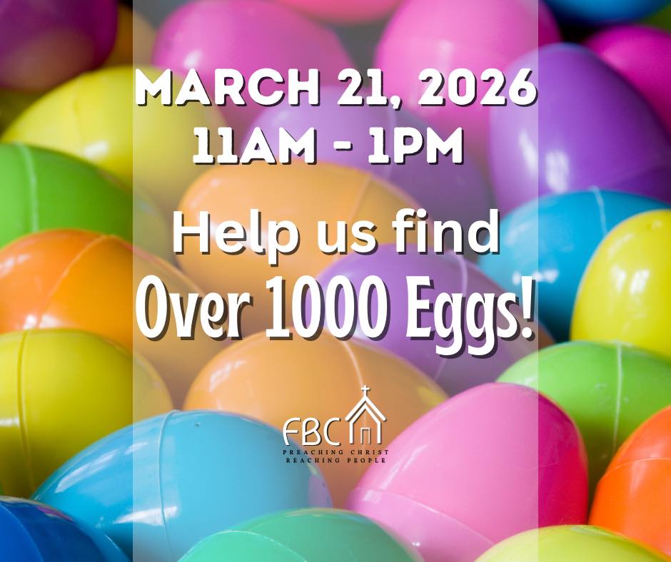 Fellowship Baptist Church needs your help! There are so many eggs to find at this community egg hunt! Join in celebrating Jesus’ Resurrection on March 21st, 2026. Children ages 2 – 11 are welcome to participate in the egg hunt. All ages are welcome for crafts, lunch, and games.