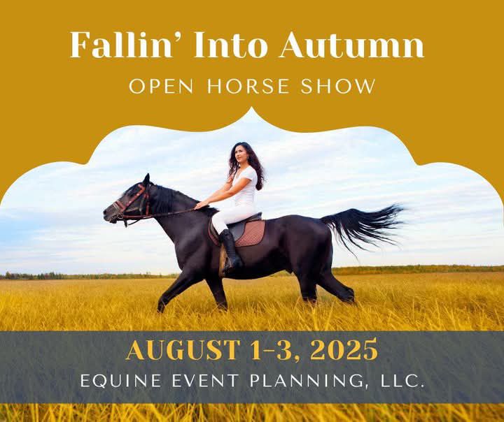 Equine Event Planning, LLC.’s Fallin’ into Autumn Open Horse Show will take place at the Senator Bob Martin Eastern Agricultural Center, August 1st – 3rd, 2025. Spectator admission is FREE! Show times are Friday: 4:30 PM to 11 PM, Saturday: 9 AM to 10 PM, and Sunday: 9 AM to 10 PM. Please visit www.EquineEventPlanning.com or call (252) 450-5438 or (336) 908-3302 for more information.