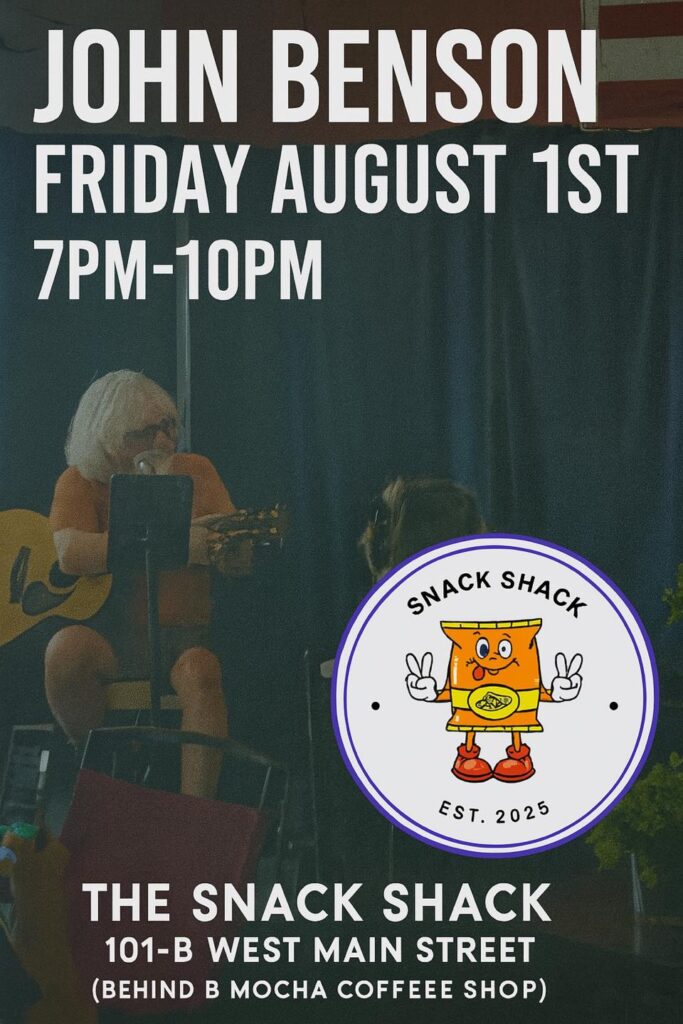 Local musician, John Benson, will be performing at The Snack Shack on Friday, August 1st, from 7 PM to 10 PM. Come on out and enjoy some music in downtown Williamston!