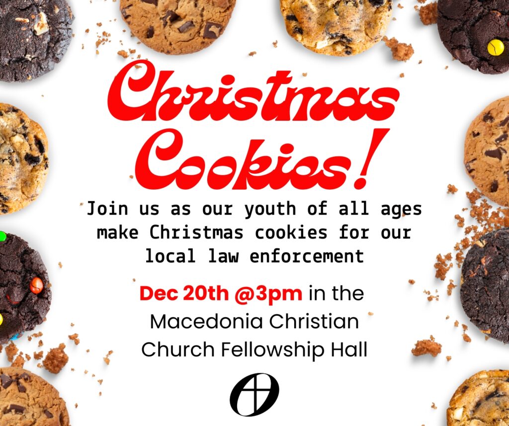It’s the most wonderful time of the year! Join us in making/decorating cookies to give to our local law enforcement. Kids of all ages are welcome, but kids under 5 will need an adult to accompany them. See you on December 20th at 3 pm in the Macedonia Christian Church Fellowship Hall.
