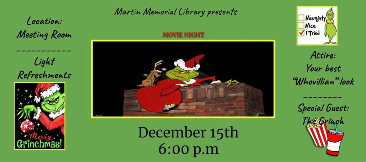 Martin Memorial Library hosts a movie night with special guest…The Grinch