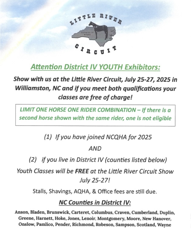 NCQHA District IV members: Scholarship savings will be offered to youth members again this year. Over $1200 was saved in 2024!
