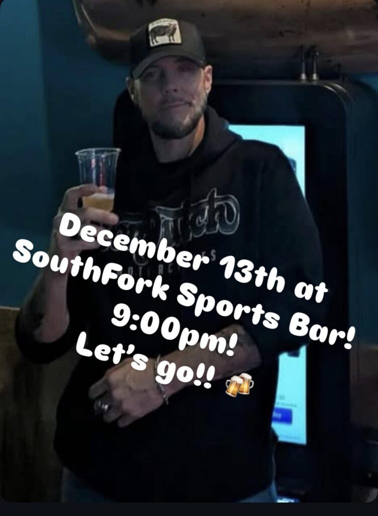 Head to Southfork Sports Bar & Grill on Saturday, December 13th, from 9 PM to midnight for a live performance by “The Outlaw” Lonnie Britton.