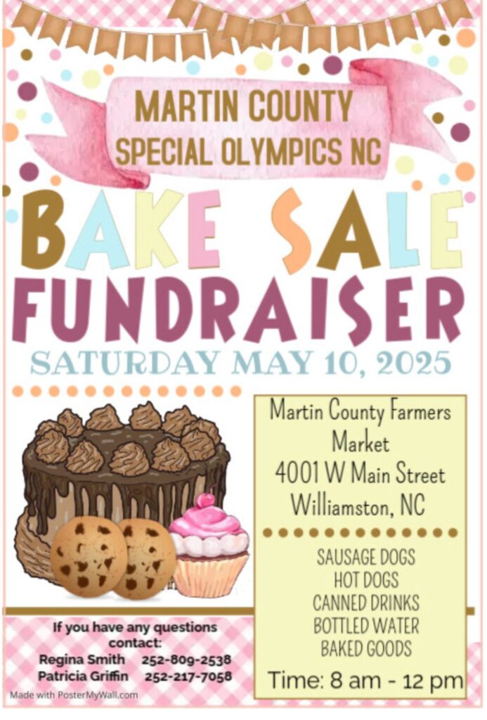 On Saturday, May 10th from 8 AM to 12 PM, support Martin County Special Olympics at their bake sale & fundraiser. There will be sausage dogs, hot dogs, beverages, and baked goods!