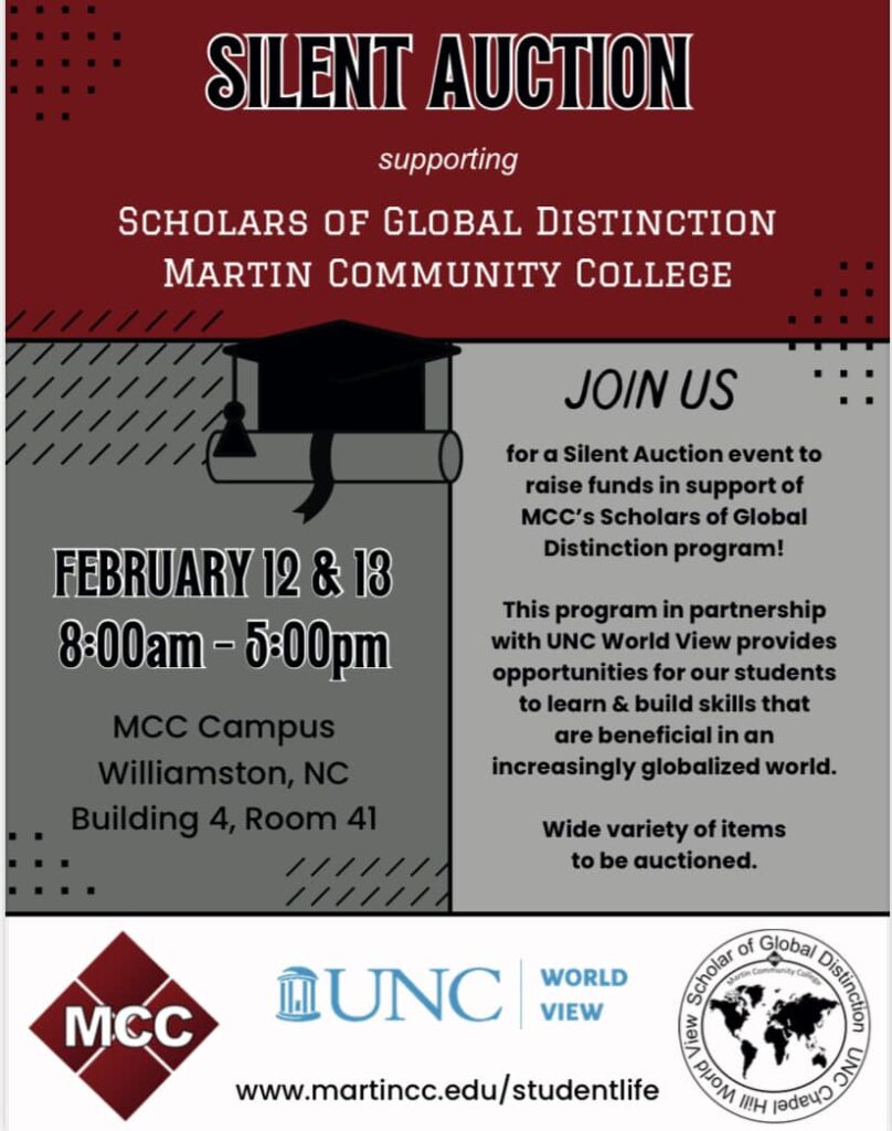 Martin Community College invites you to support our scholars at the MCC Scholars of Global Distinction Silent Auction. Students & faculty appreciate your support of this wonderful program!