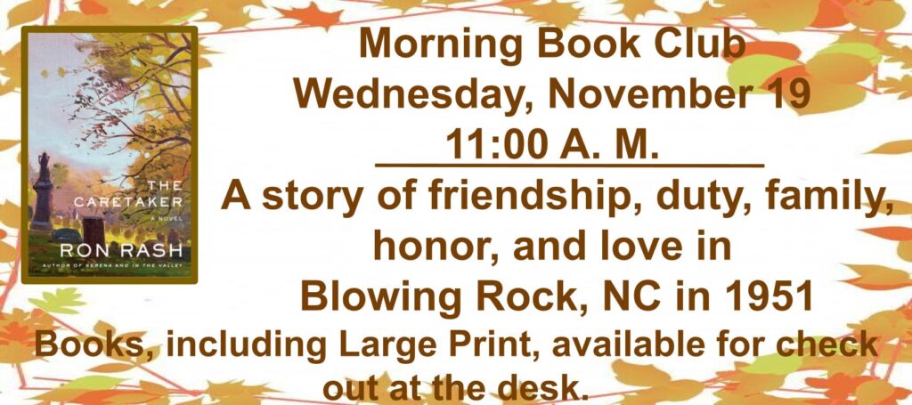 Join library staff for this month’s pick: The Caretaker by Ron Rash – a haunting and deeply human novel set in 1950s Appalachia. Friendship, love, duty, betrayal: the choices these characters make will stay with you long after the last page. Dive into the world of Blackburn, Naomi, and Jacob, and explore what it means to care for others — and ourselves.