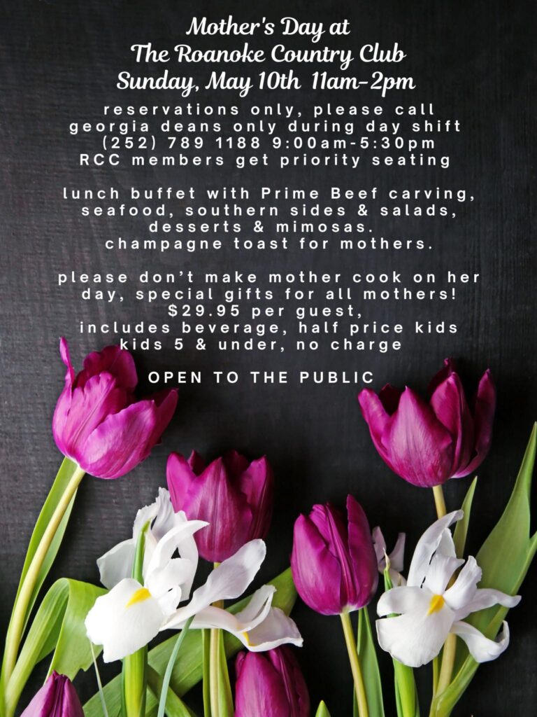 Celebrate your Momma at Roanoke Country Club this year! Now accepting Mother’s Day reservations at 252-789-1188.