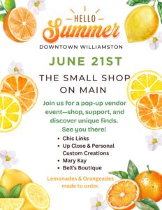 • The Small Shop on Main will be selling Orangeade and Lemonade right across the street.