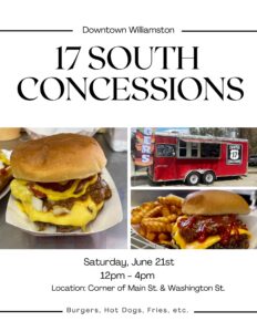 • 17 South Concessions food truck will be vending tasty food on the corner near stage.