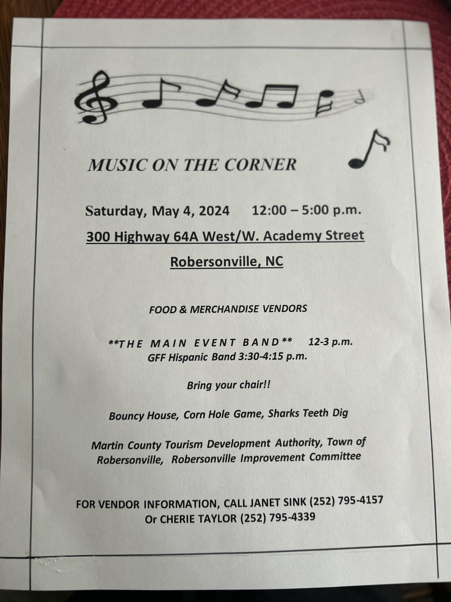 Music, vendors, and fun for the whole family! In Downtown Robersonville