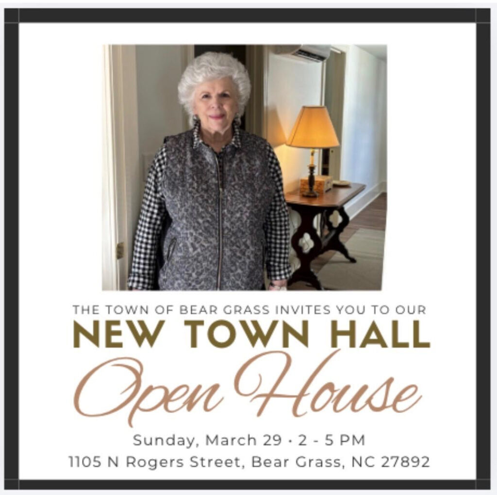 “On behalf of Mayor Charlotte Griffin and the Town Board of Commissioners, the community of Bear Grass invites all to come to the New Town Hall Open House on Sunday, March 29th. It would be an honor to see you there”!