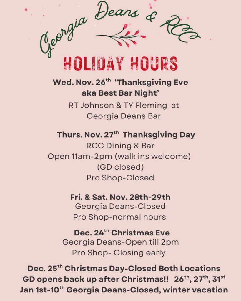 Celebrate Thanksgiving at Roanoke Country Club with a meal by Georgia Deans Restaurant & Bar on Thanksgiving, Thursday, Nov. 27th, 11 AM – 2 PM.