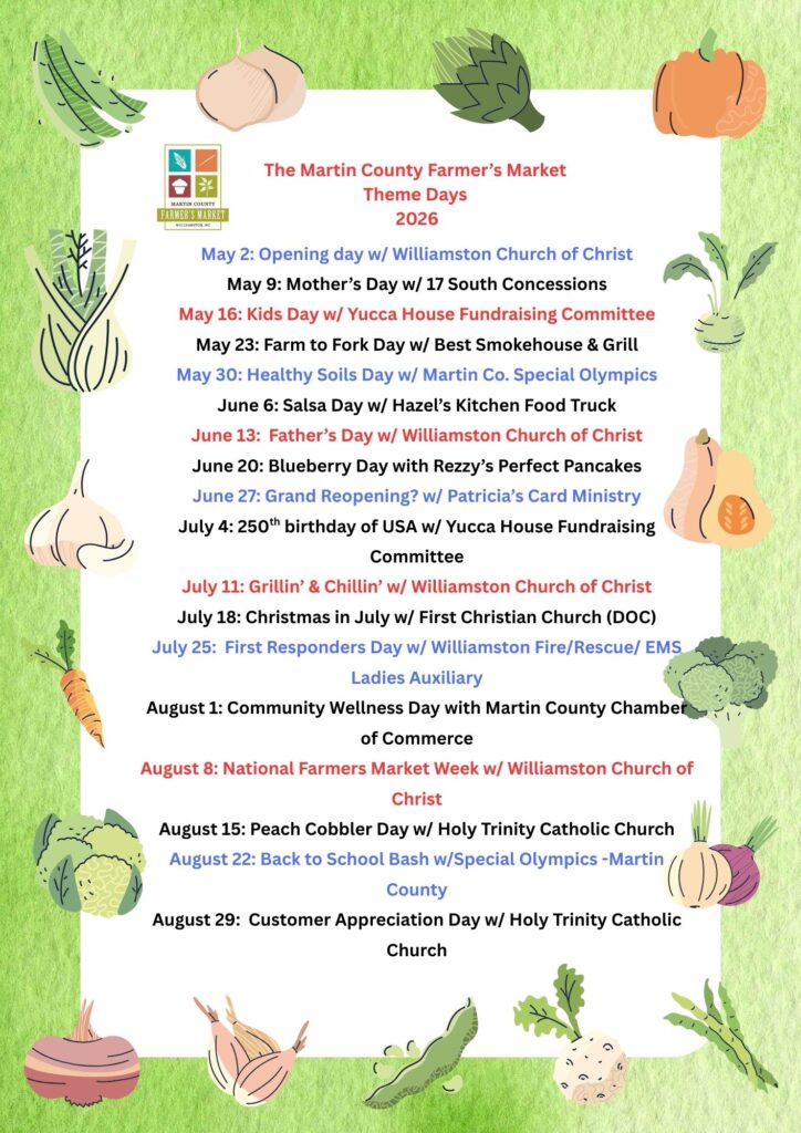 The Farmers Market has an awesome schedule of events for the 2026 Market Season and some new faces hosting concessions, along with fabulous food trucks! Please join in the fun…