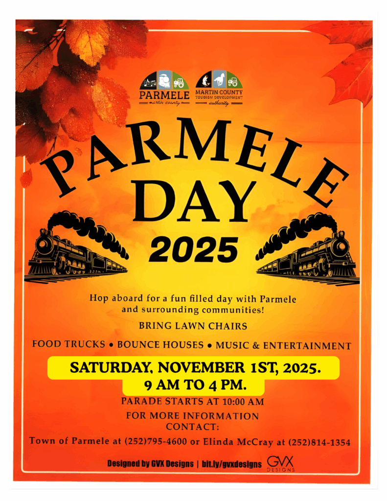 Join the Town of Parmele for this annual event celebrating the biggest little town in Martin County on Saturday, November 1st! ***The October 11th date was rescheduled due to heavy rainfall; the new date is November 1st!*** Hope to see you there on this fun-filled day! Follow Town of Parmele on Facebook for updates.