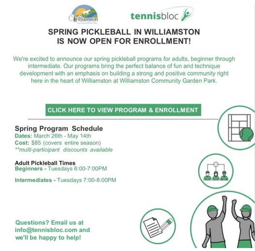 Hosted by Town of Williamston Parks and Rec and Tennisbloc.