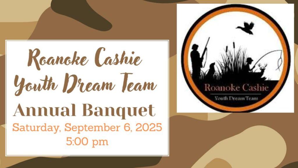 The Roanoke Cashie Youth Dream Team Annual Banquet will take place at Senator Bob Martin Eastern Agricultural Center in Williamston, Saturday, September 6th, 2025. This is a wonderful event benefiting youth education in wildlife conservation and hunting. This is a ticketed event, open to the community. Check out the RCYDT Facebook page for ticket information! Get your tickets early and come out!
