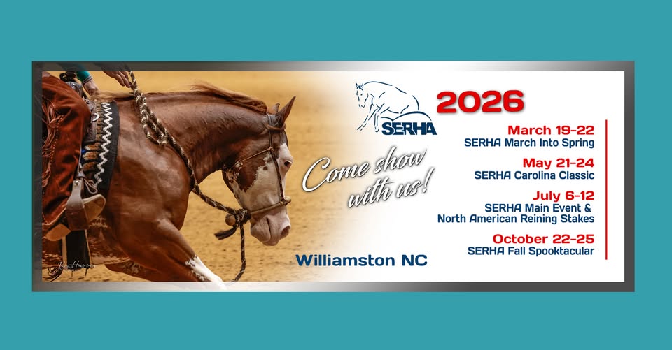 The SERHA Carolina Classic will be held at the Senator Bob Martin Eastern Agricultural Center, May 21st – 24th, 2026. Don’t miss your chance to watch these awesome riders “slide” into top awards spaces during this show. Show times are Thursday 7 AM to 5 PM, Friday 7 AM to 5 PM, Saturday 7 AM to 9 PM, and Sunday 7 AM to 4 PM. Visit www.serha.org for more information.