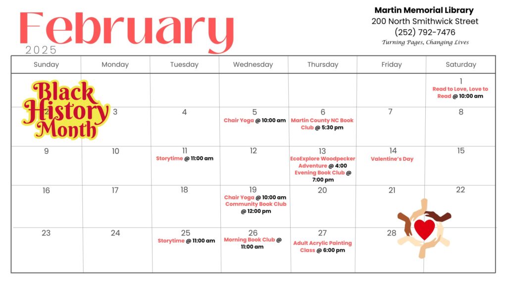 Children and their caregivers are invited to join Youth Services Library Assistant Jessika Patrick on February 11th and 25th for a fun Storytime. Storytime is for toddlers and preschoolers. It includes books, stories, songs, crafts, and other adventures in reading. All children must be accompanied by an adult.