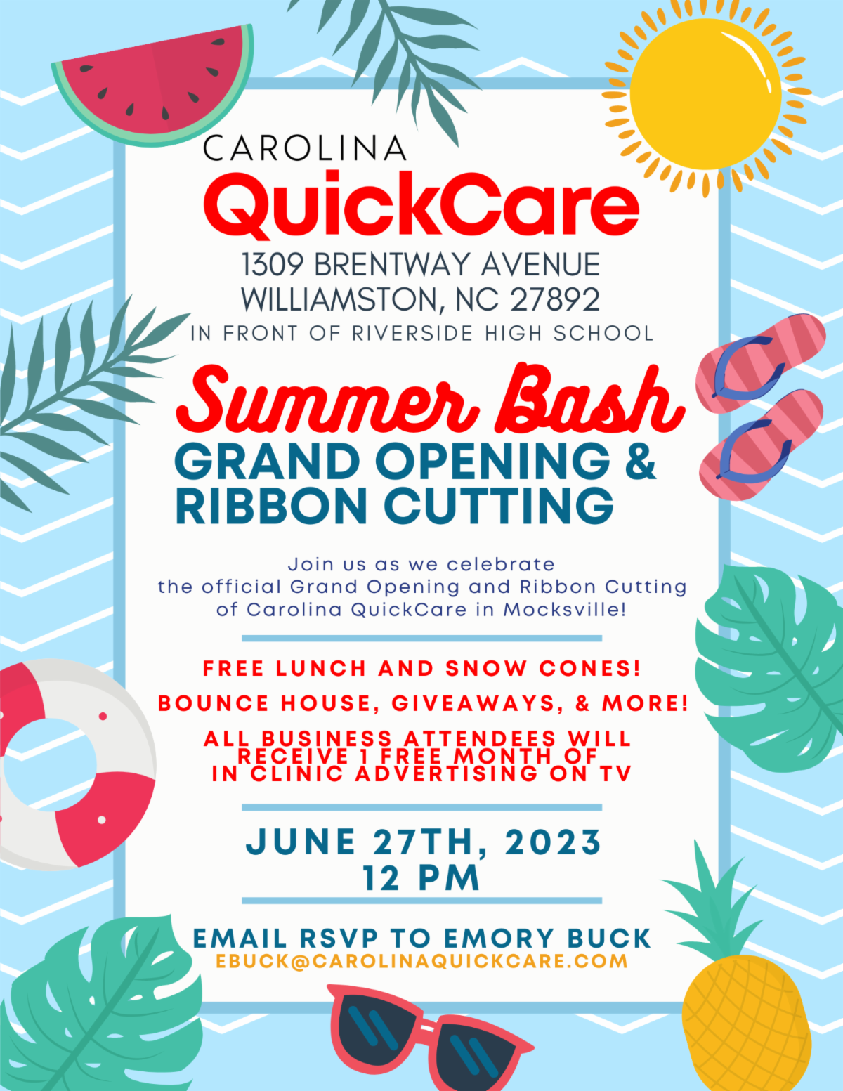 Join Carolina Quick Care and team for a day of fun celebrating a new business and service to our region!