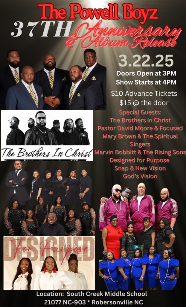 See national recording artists, The Powell Boyz and a full line up in Robersonville, NC on Saturday evening, March 22nd, 2025!