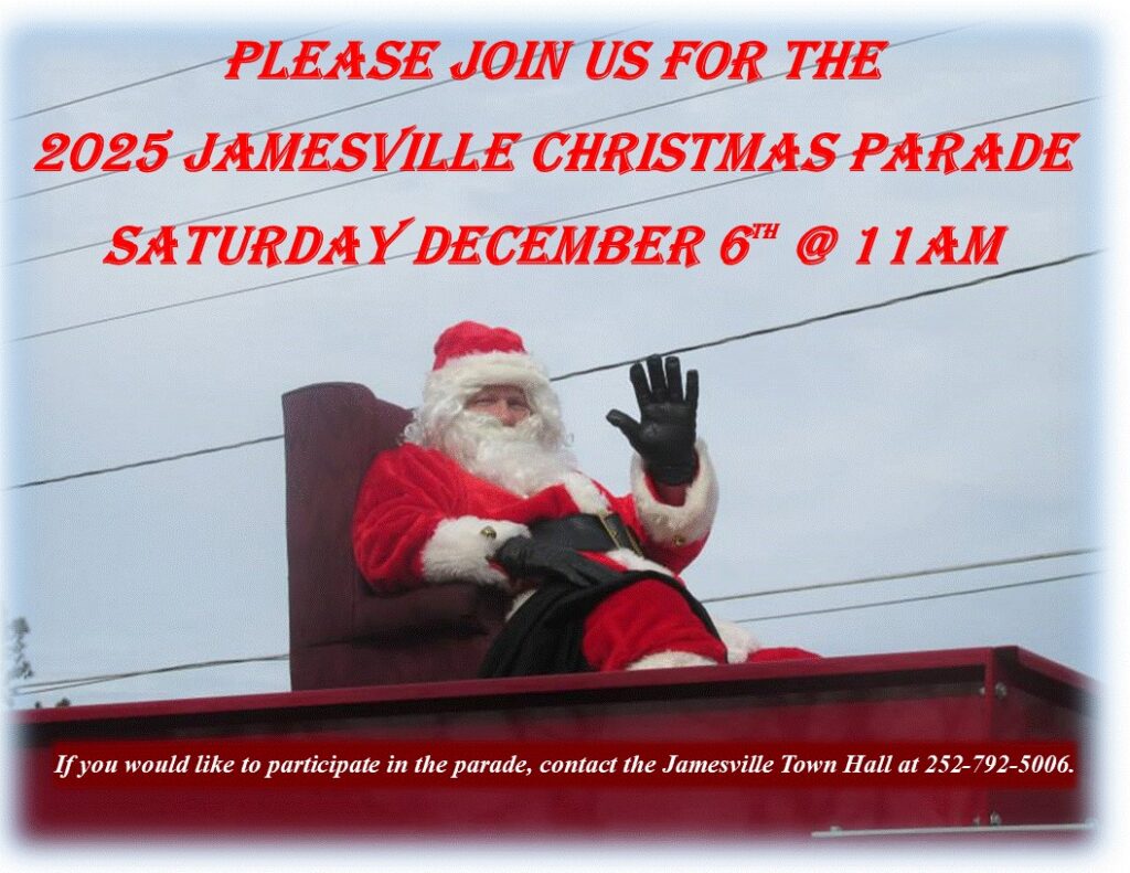 Join the community for the Town of Jamesville’s 2025 Christmas Parade on Saturday, December 6th at 11 AM. Please spread the word about this festive holiday event!