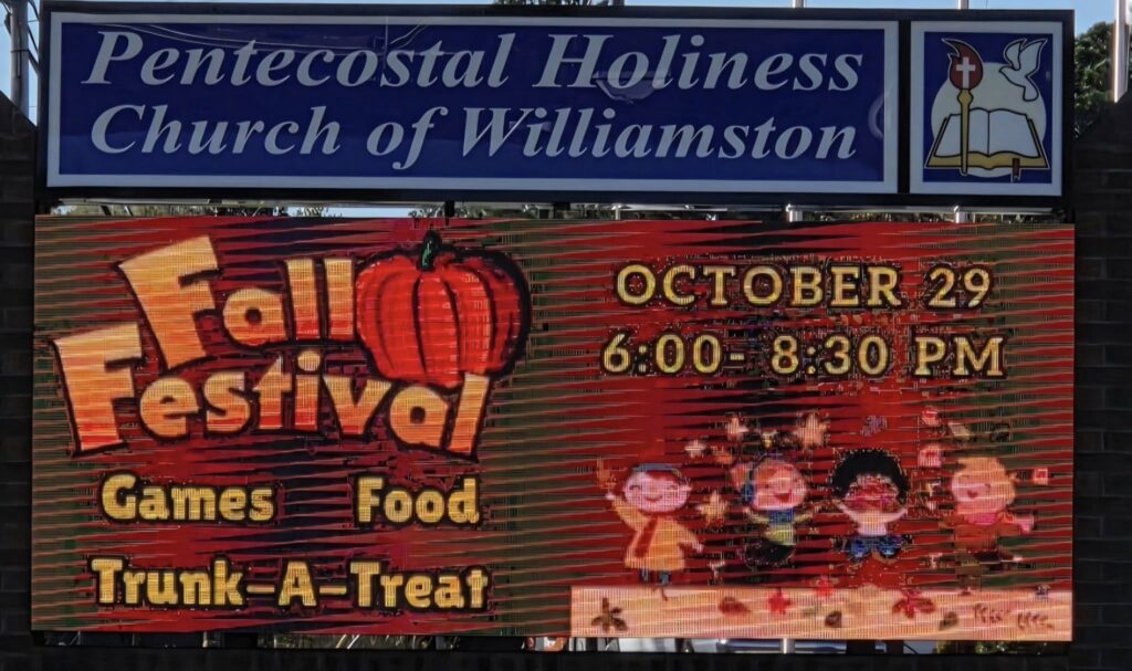 Come out and join Williamston First Pentecostal Church for their Fall Festival, October 29th at 6 PM! There will be games, food, and a trunk-or-treat!