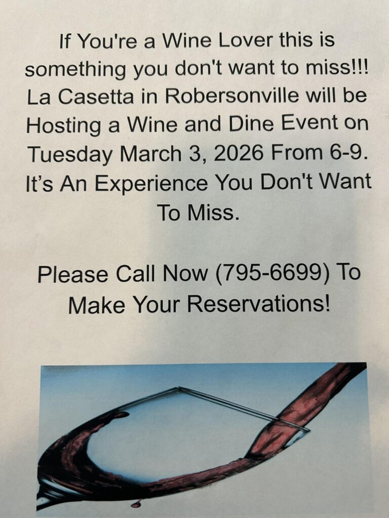 SAVE THE DATES! Come and enjoy a special night with wine and delicious food on Tuesday, March 3rd, from 6 PM to 9 PM. Reserve your spot by calling 252-795-6699 and make sure to mark it in your calendar!