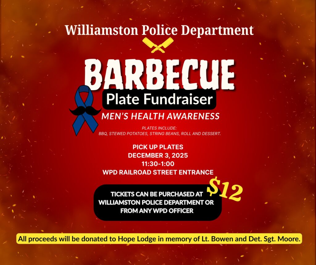 Each November, the Williamston Police Department comes together to raise awareness for men’s health and to remember two of Williamston’s own—Lt. Tony Bowen and Det. Sgt. Paul Moore—who both bravely battled colon cancer. This year, all funds raised will be donated to the Hope Lodge in Greenville in their memory. If you’d like to contribute, donations can be made payable to: WPD Support Auxiliary. Your support helps honor their legacy and continue the important work of raising awareness for men’s health. Thank you for standing with Williamston.