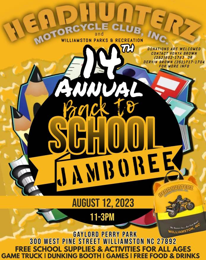 HeadHunterz MC INC. & Williamston Parks & Recreation will host the 16th Annual Back to School Jamboree at Gaylord Perry Park in Williamston on August 9th. **FREE BACKPACKS & SCHOOL SUPPLIES AVAILABLE** Plus - Game Truck | Dunking Booth | Games | Free Food & Drinks **Activities For All Ages** Please bring all the Martin […]