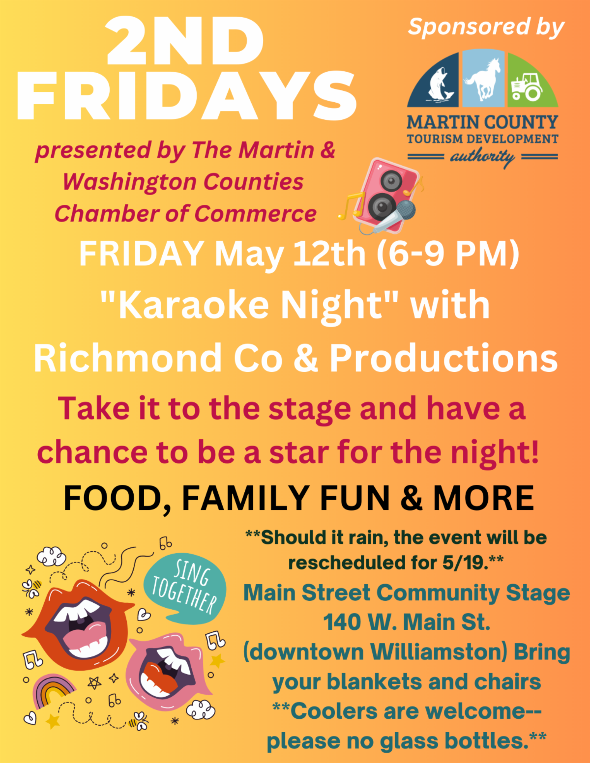 Join us out at the Main Street Community Stage in Downtown Williamston for some Karaoke!