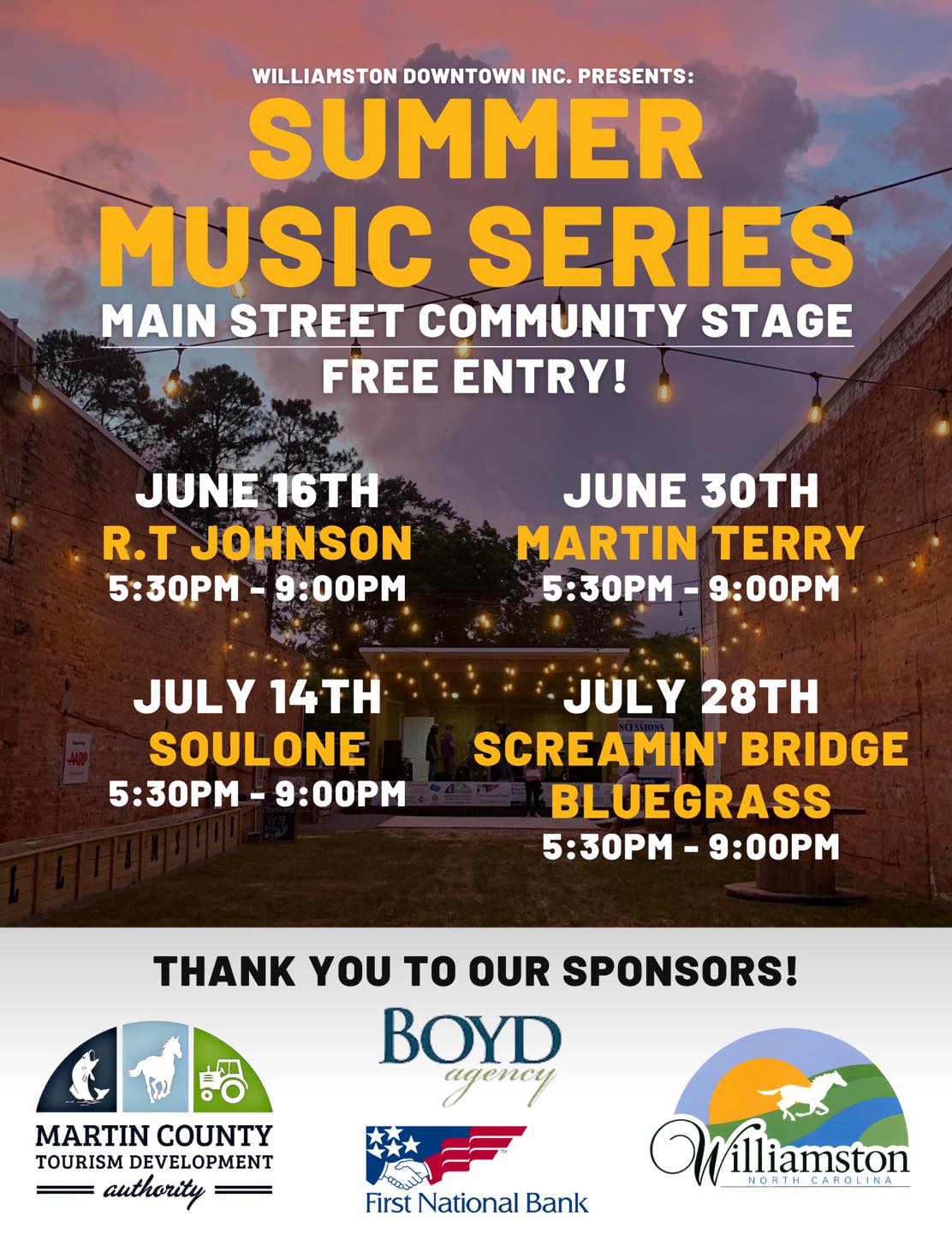 Main Street Community Stage - Williamston 140 W Main St, Williamston, NC, United StatesJoin Williamston Downtown as we pack the Main Street Stage with music and fun!